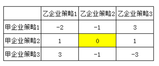 两家企业生产同种产品,为抢占市场规模,每家企业都制定了三个市场推销策略,两家企业的市场策略会影响双方的市场规模占有情况,赢得矩阵如下: