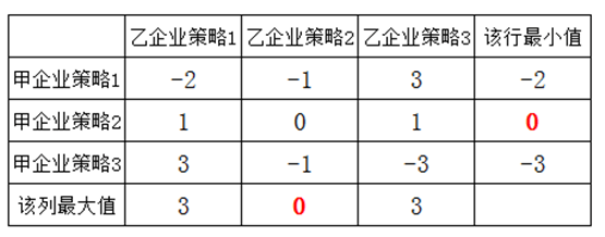 第二步,选出“列最大值”中的最小值,选出“行最小值”中的最大值,对应的策略即为答案。