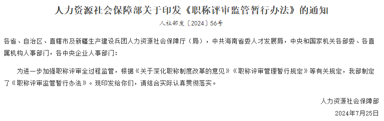 近日,为进一步加强职称评审监管,促进职称评审公平公正,营造良好的人才发展环境,人力资源社会保障部近日印发《职称评审监管暂行办法》。其作为我国首部职称评审监管办法,将聚焦于申报人、评审专家、职称评审相关工作人员等3类重点人群和评审单位、申报人所在单位等2类重点单位,明确了重点监管内容。