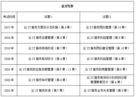答:像是IT服务规划设计方向、IT服务风险管理方向考的次数比较多,而且除了大方向,小方向也会考,比如2022年的时候就考了规划里面的“过程管理要素设计”。