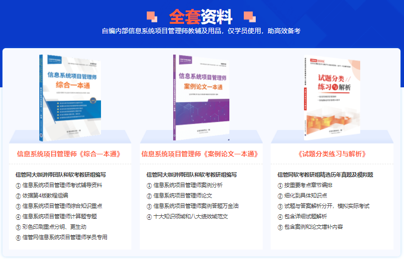 报名JRS直播信息系统项目管理师培训课程即免费赠送邮寄内部辅导资料【注:仅提供给高端班、精品班和面授套餐班培训学员(报名首次邮寄一份),不单独出售】。