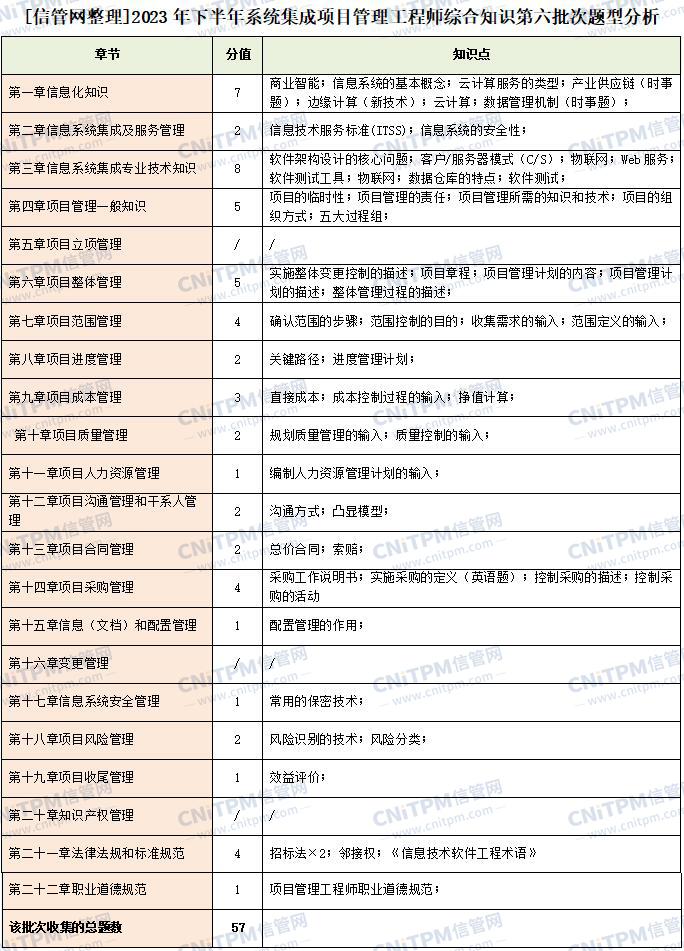 2023年下半年系统集成项目管理工程师第六批考试于11月4日顺利结束,JRS直播在考试结束后也更新了试题与答案,为帮助广大考生能了解本次考试考情及题型分布情况,JRS直播特意整理了 <2023年下半年系统集成项目管理工程师第六批综合知识题型分析> 供广大考生进行参考,希望对各位考生有所帮助。