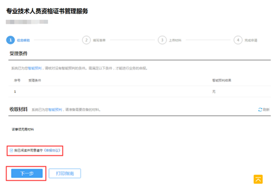 2.勾选“我已阅读并同意遵守《申报协议》”,点击“下一步”。