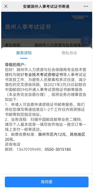 领取地点:滁州市行政服务一楼大厅公共服务区E06号邮政速递窗口