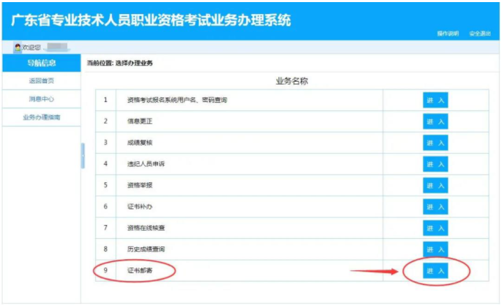 需要邮寄的考生,请于2025年1月9日至2025年1月18日登录广东人事考试网(http://rsks.gd.gov.cn)首页“广东省专业技术人员职业资格考试业务办理系统”在线申办。申请邮寄期限截止后,证书统一由中国邮政EMS快递寄出(邮费到付)。