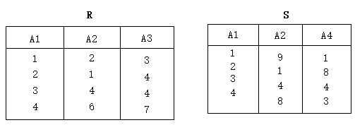 关系R、S如下表所示,RS的结果集有(1)个元组,R、S的左外联接、右外联接的元组个数分别为(2)。