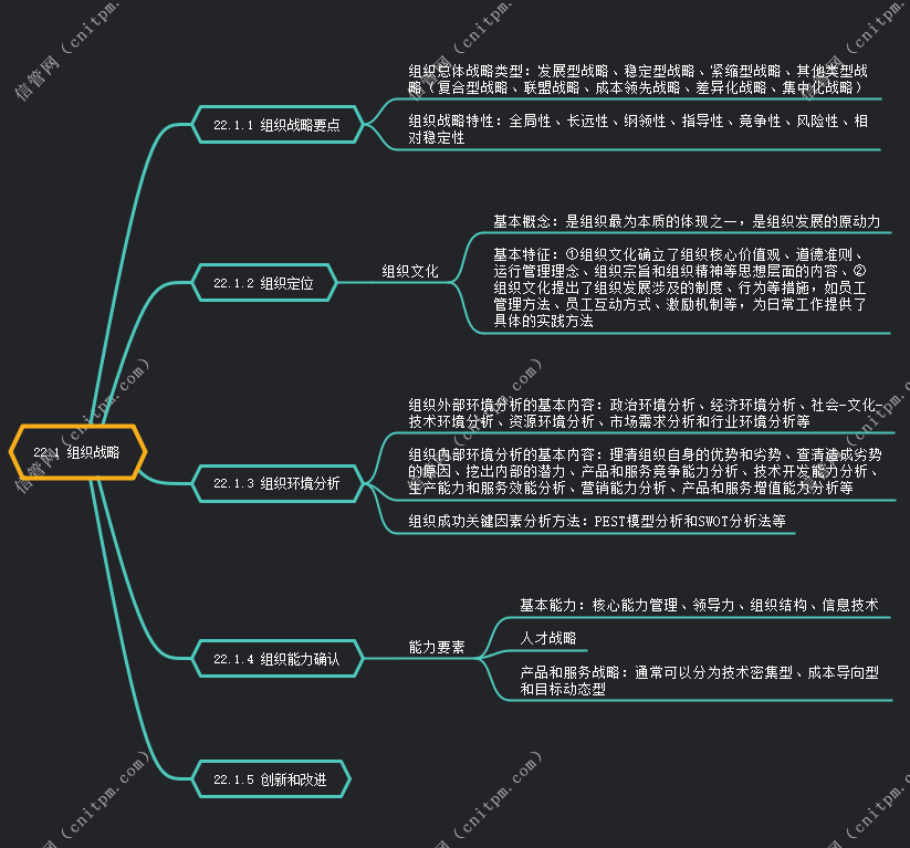 2025年信息系统项目管理师章节考点思维导图:22.1 组织战略