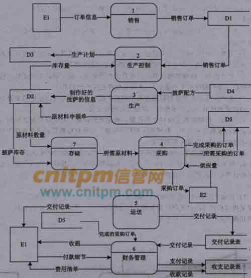 (1)销售。处理客户的订单信息,生成销售订单,并将其记录在销售订单表中。销售订单记录了订购者、所订购的披萨、期望的交付日期等信息。
