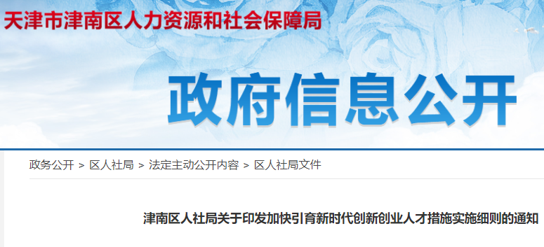 津南区人社局关于印发加快引育新时代创新创业人才措施实施细则的通知