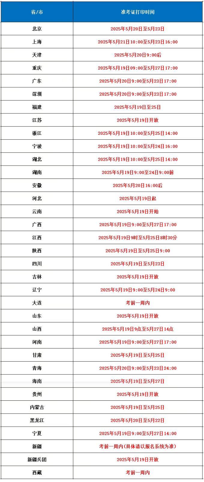 根据各地软考办所发布的报考通知,2025上半年网络工程师准考证打印入口已于今日(5月19日)开放,请考生尽快登录中国计算机技术职业资格网进行打印。