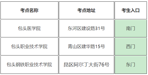 (一)社工考试设包头医学院、包头职业技术学院和包头钢铁职业技术学院3个考点;计软考试设内蒙古科技大学图书馆1个考点。请广大考生认真阅读准考证上考点地址信息,提前了解考点入口位置和前往路线,做好考试当天的出行安排。为避免交通拥堵,考试当天应提前1小时到达考点,倡导考生乘坐公共交通,送考车辆禁止进入校区,停车落客后应及时驶离考点,严禁车辆在考点周围聚集。为确保道路畅通,考试当天交管部门将在各考点附近及道路沿线增派交警,请考生配合交警工作。