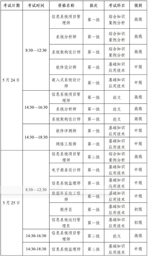 准考证打印时间:5月19日9:00~5月25日14:30可登录中国计算机技术职业资格网(网址https://www.ruankao.org.cn/)打印准考证。