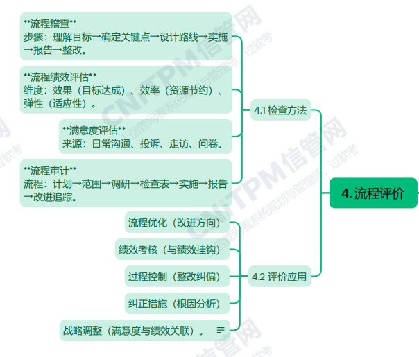 系统规划与管理师第3版教程第十四章规划与过程管理第四节主要内容考点涉及:检查方法、评价应用等,具体思维导图整理如下: