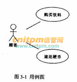 现采用面向对象方法分析和设计该自动售货机的软件系统,得到如图3-1所示的用例图,其中,用例“购买饮料”的用例规约描述如下。