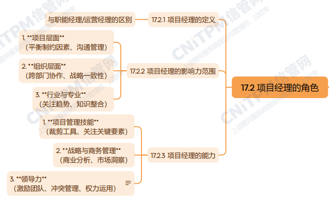 系统规划与管理师第3版教程第十七章信息系统项目管理第二节主要内容考点涉及:项目经理的定义、项目经理的影响力范围、项目经理的能力等,具体思维导图整理如下: