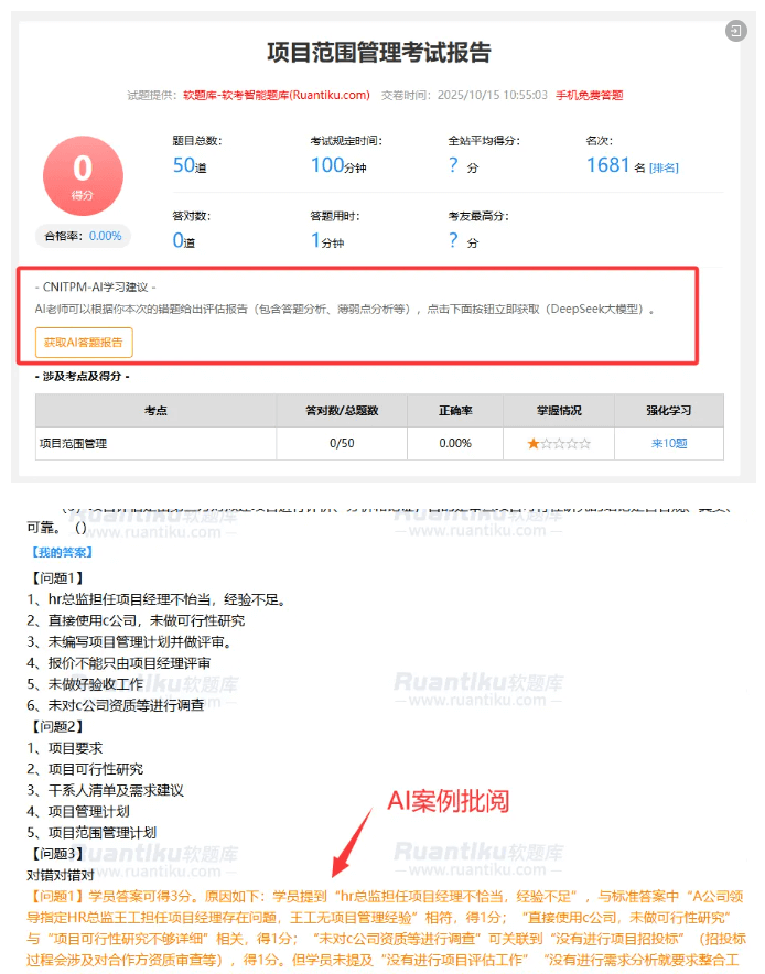 软题库功能全面,目前提供每日一练、真题模考、章节练习、知识点练习、月底模考、答题反馈、案例AI批阅、AI答题分析、答题记录、错题记录、试题收藏、学习评估、成绩预测等功能,试题包含参考答案和解析,所有功能都免费使用,满足考生备考需求。
