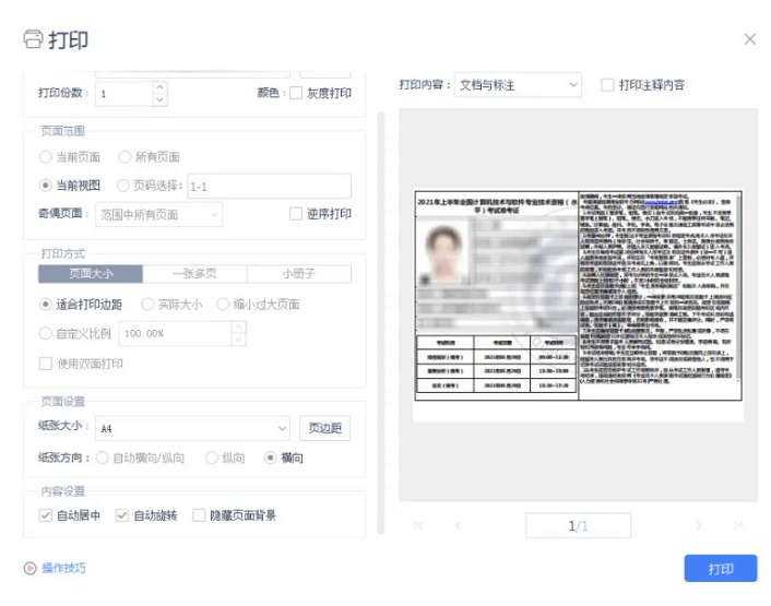 请注意:调整时应确保打印出的准考证内容清晰、完整,避免因过度缩放导致文字过小或信息显示不全。