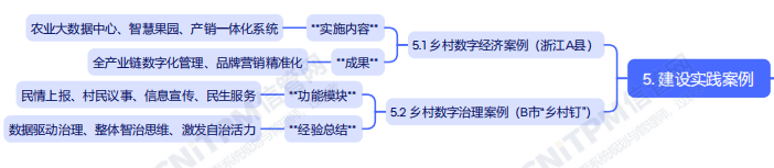 系统规划与管理师第3版教程第二十章发展整体规划第五节主要内容考点,如:乡村数字经济案例、乡村数字治理案例等,具体思维导图整理如下: