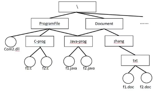 Windows文件系统的目录结构(C盘下)如下图所示,假设用户要访问文件f2.java,则该文件的全文件名为( )。若系统当前工作目录为ProgramFile,那么该文件的相对路径为( )。