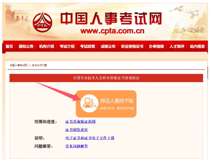 第二、点击“持证人查询下载”进入进入证书查询验证界面