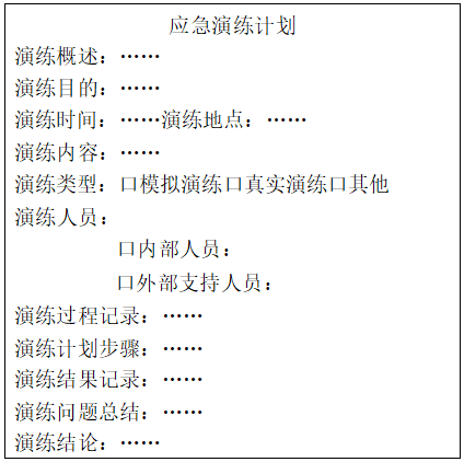 运维团队为检验技术成果,决定周末举行应急演练。由于邀请客户参加,需将演练计划提前发送相关领导。请审阅运维团队提供的演练计划大纲(见下图)。建议增加的信息为( )。