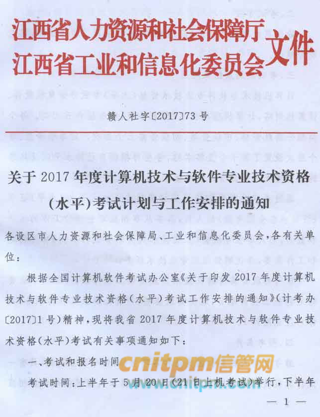 江西2017年上半年软考高级信息系统项目管理师、中级系统集成项目管理工程师和信息安全工程师等考试今日开始报名,网上报名时间:2017年3月1日至4月14日。请江西的各位考生在指定时间完成报名工作。