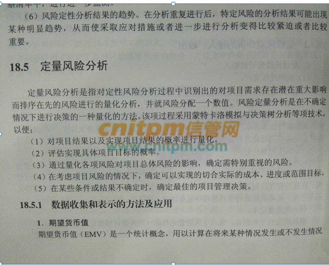 恩,风险管理子过程多,定性定量这两个是渐进的过程,而且定量分析的技术可能不太好编吧(如果没有实际经验的话),放一起节省篇幅也不错