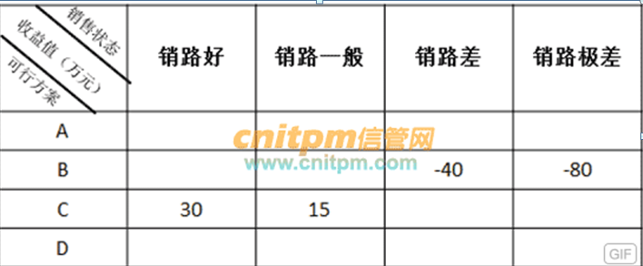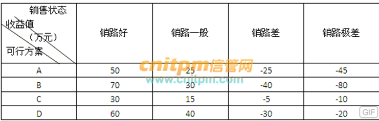2014年下半年信息系统项目管理师上午综合知识真题试题解析:69、三个备选投资方案的决策损益表如下,如果采用最大最小决策标准(悲观主义),则选择()