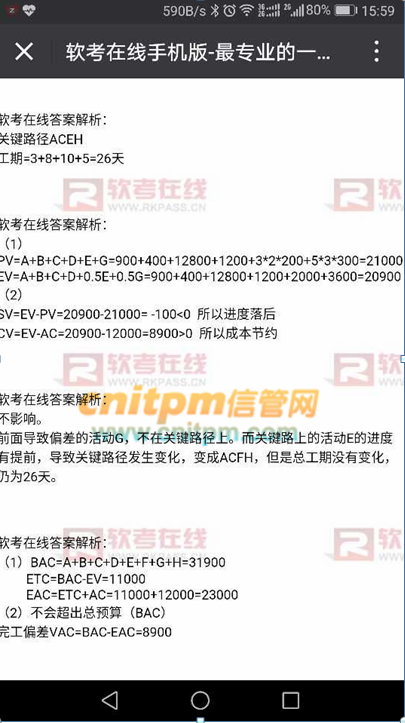(2)请判断次时项目的成本偏差(CV)和进度偏差(SV),以及成本和进度执行情况