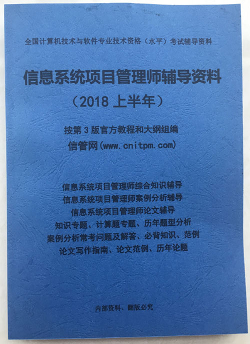 《信息系统项目管理师辅导资料》(2018上半年)由JRS直播(www.fzyzx.cn)以信息系统项目管理师教程第3版和信息系统项目管理师考试大纲第2版为基础组织编写,同时根据2017年下半年考试情况进行一定修订,作为JRS直播2018年上半年计算机技术与软件专业技术资格(水平)考试中的高级信息系统项目管理师考试培训辅导资料。