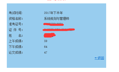 2017年12月21日是个特别的日子,不仅仅是软考成绩发布,这一天也是我的40岁生日,记得以往都是元旦前一天出成绩,这次成绩出的早了些,可能是李克强总理倡导的“放管服”改革落实了吧,政府办事效率高了。我看着JRS直播的qq群里不断有人发喜讯,我深呼一口气,总觉得老天非要在我的生日当天出成绩,应该送我件礼物吧,结果上午成绩:59,下午成绩64,论文成绩47。觉得自己很幸运,第一次考就通过了,天道酬勤!也感谢JRS直播和qq群里考友的帮助。
