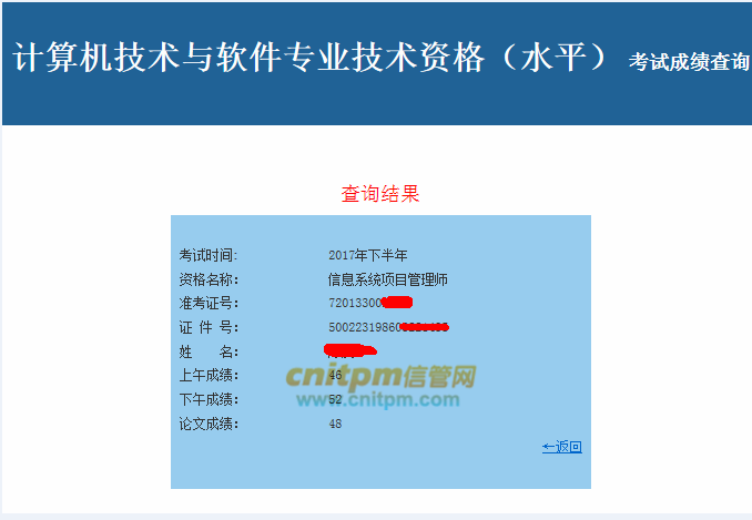 12月21日看见q群考友说分数查询已开通,于是怀着忐忑的心情查询了自己的高项分数。