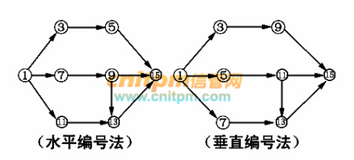 (5) 网络图中节点编号顺序应从小到大,可不连续(非连续编号可利于以后的修改),但严禁重复。