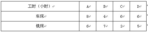 某车间需要用一台车床和一台铣床加工A、B、C、D 四个零件。每个零件都需要先用车床加工,再用铣床加工。车床和铣床加工每个零件所需的工时(包括加工前的准备时间以及加工后的处理时间)如下表。