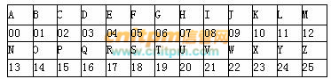 设已知仿射密码的密钥fey = (11,3),英文字符和整数之间的对应关系如表2.1。则: