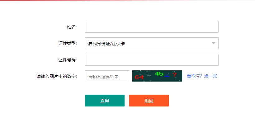 第四步:进入准考证打印页面后,填写个人信息,输入姓名,选择证件类型,输入证件号码,输入图片中的运算结果,最后点击查询即可。
