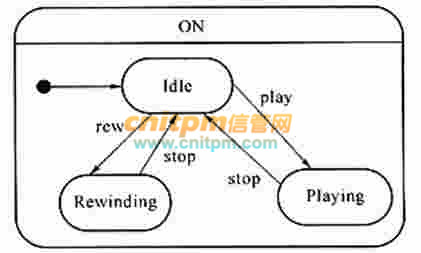 以下关于UML状态图的叙述中,不正确的是(1)。对下图的描述正确的是(2)。(1)A.用于描述一个对象在多个用例中的行为B.用于某些具有多个状态的对象而不是系统中大多数或全部对象C.用于描述多个对象之间的交互D.可以用于用户界面或控制对象(2)A.ON是一个并发状态B.因为此状态图中没有终止( final)状态,所以此图是无效的C.play、stop和rew是动作D.ON是超状态