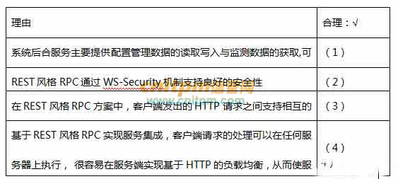 系统实现相应的配置管理与监控功能时,需要集成云平台侧提供的大量服务以实现配置数据的读取写入与不同视图监测数据的获取。项目组在确定服务集成方案时,对比了REST风格RPC与SOAPRPC两种方案,经过分析讨论,项目组最终决定采用REST风格RPC机制实现服务集成,请判断表5-2中给出的选择REST方案的理由是否合理。