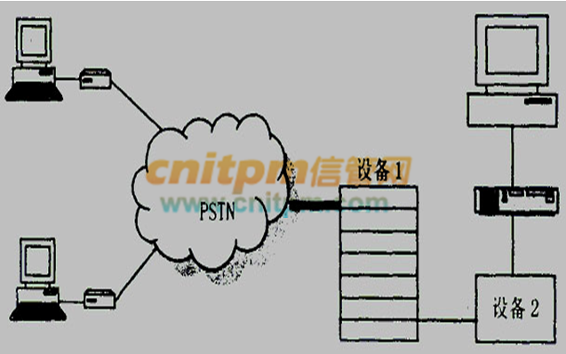 下图表示客户端通过网络访问远端服务器的一种实现方式,请指出在服务器端的设备1是(1),没备2是(2)。使用电话线路连接远程网络的一种链路层协议是(3)。(1)A、默认网关 B、主交换机 C、Modem池 D、集线器(2)A、Web服务器 B、FTP服务器 C、Mail服务器 D、RAS服务器(3)A、TCP B、PPP C、UDP D、ARP