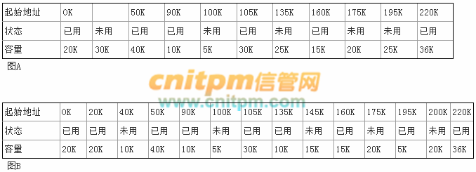 假设某计算机系统的内存大小为256K,在某一时刻内存的使用情况如图A所示。此时,若进程顺序请求20K、10K和5K的存储空间,系统采用( )算法为进程依次分配内存,则分配后的内存情况如图B所示。