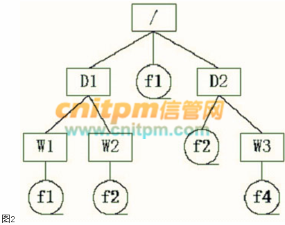 B、子目录W2中文件f2和子目录D2中文件f2是不相同的