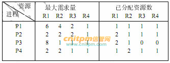 假设系统中有四类互斥资源 R1、R2、R3 和 R4,可用资源数分别为 9、6、3 和 3。在 T0 时刻系统中有 P1、P2、P3 和 P4 四个进程,这些进程对资源的最大需求量和已分配资源数如下表所示。在 T0 时刻系统剩余的可用资源数分别为(1) 。如果 P1、P2、P3和 P4 进程按 (2) 序列执行,那么系统状态是安全的。