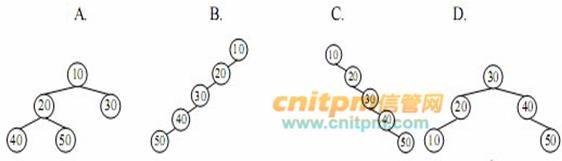 用关键字序列 10、20、30、40、50 构造的二叉排序树(二叉查找树)为 ( ) 。 A. AB. BC. CD. D
