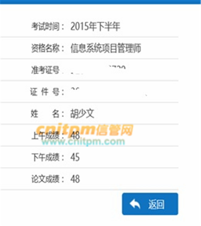 对于上午综合知识主要是通过刷题来提高的,下午应用案例主要是看历年的真题,找到考试的重点进行重点突破,必须要自己动手去写。就这样自己经过了2个多月的复习,参加了考试,最后考出了自己的理想成绩(60分,58分)。