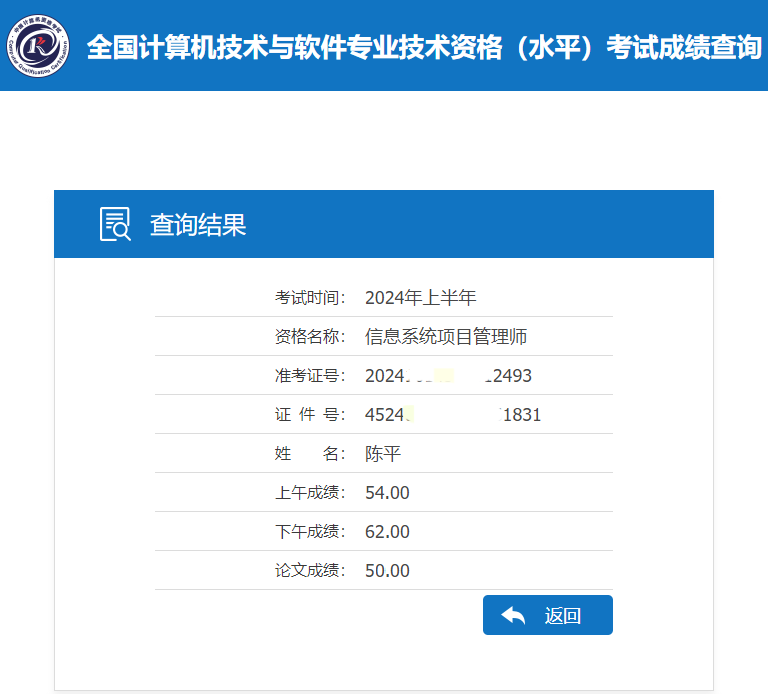 结束考试已过2月有余,恰好看到征文活动,对本人2024年上半年次考试完整历程进行复盘和备考经验简单分享,希望自己浅薄的经验可以真正帮助导更多学友,还是先上成绩,历经一个半月,一次通过,成绩54.62.50,隐私信息做了马赛克处理,望各位学友见谅。