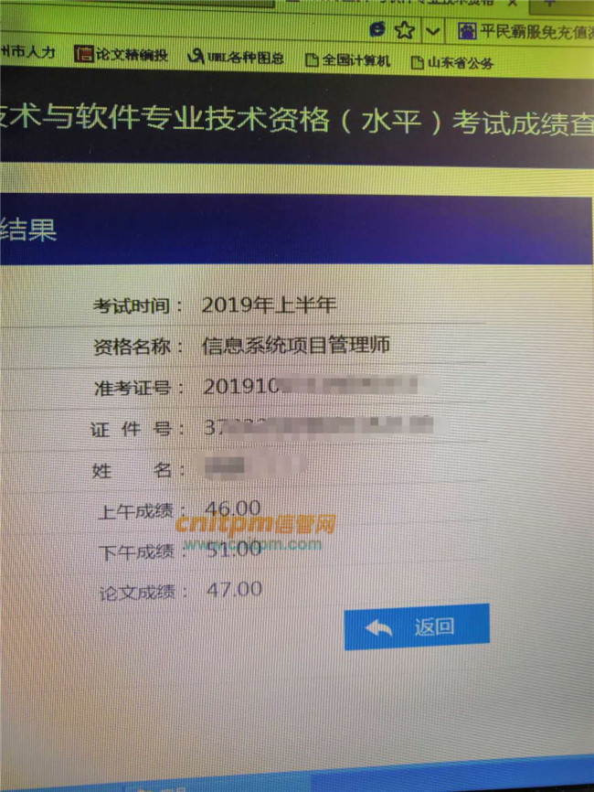 其实这个考试没有别人说的那么难,网上说这个通过率多小,感觉是因为准备不充分的人太多。本人写这篇文章,其实最终的体会主要是以下几点:一是不能怵,考试没有想象中的那么难。二是坚定的心理,要有必须考过的坚持,不然会时不时偷懒,本人工作多年,肯定也早就没有了学习的习惯,也是让涨工资的诱惑和报名培训班的费用的刺激着,不然培训费用不白花了么。三是多理解,背诵只是基础,论文得靠理解,死记硬背是不行的,在这里推荐《项目经理那些事》,能帮助理解一些字面上难以理解的事情。四是坚持再坚持,我自己是个三分钟热度的人,所以是提前准备的,在学习的过程中很多次坚持不下来或者放松的时候,但是过几天就给自己打打气,再坚持一阵子,就这样,虽然断断续续,虽然过程中自己的很多学习计划都没有完成,但是最终自己也有了大致的理解。五是可以搜集一下别人的总结笔记,比自己死啃教材管用,当然有经济条件的,还是推荐参加正规培训班,这真的是捷径。