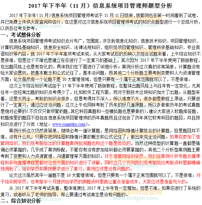 [题型分析]2017下半年信息系统项目管理师全科真题题型分析(综合、案例、论文)
