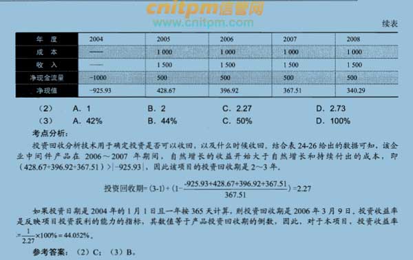 按04年初。即04年1月。。。07年1月。这样算的话。在06年就能收回了。04.01-05.01算一年,05.01-06.01算两年,所以就会是两年多。