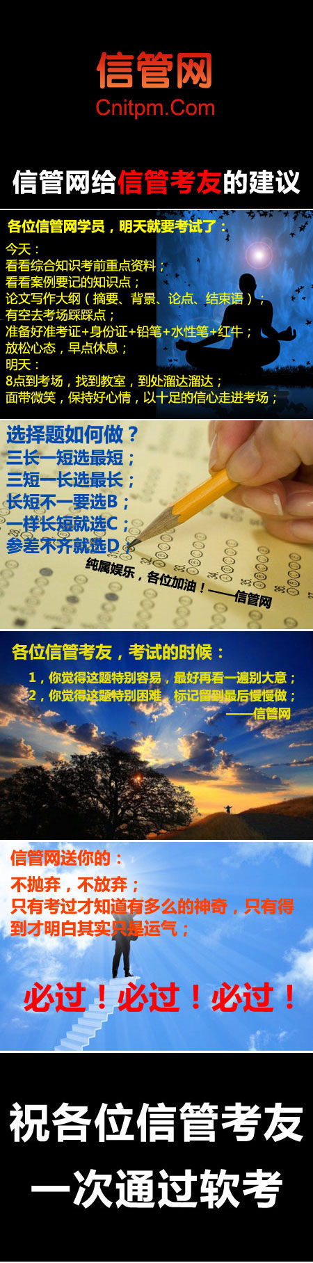 点击查看>>2015下半年软考信管与集成考前专题(考场须知、注意事项、准考证打印等)