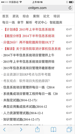 目前通过移动网站可以查看资讯、综合知识、案例分析、论文、每日一练、章节练习、试题解析、考试中心、智能题库(软题库)等内容,后期我们将继续对移动网站功能进行优化加强,提供更多的服务。